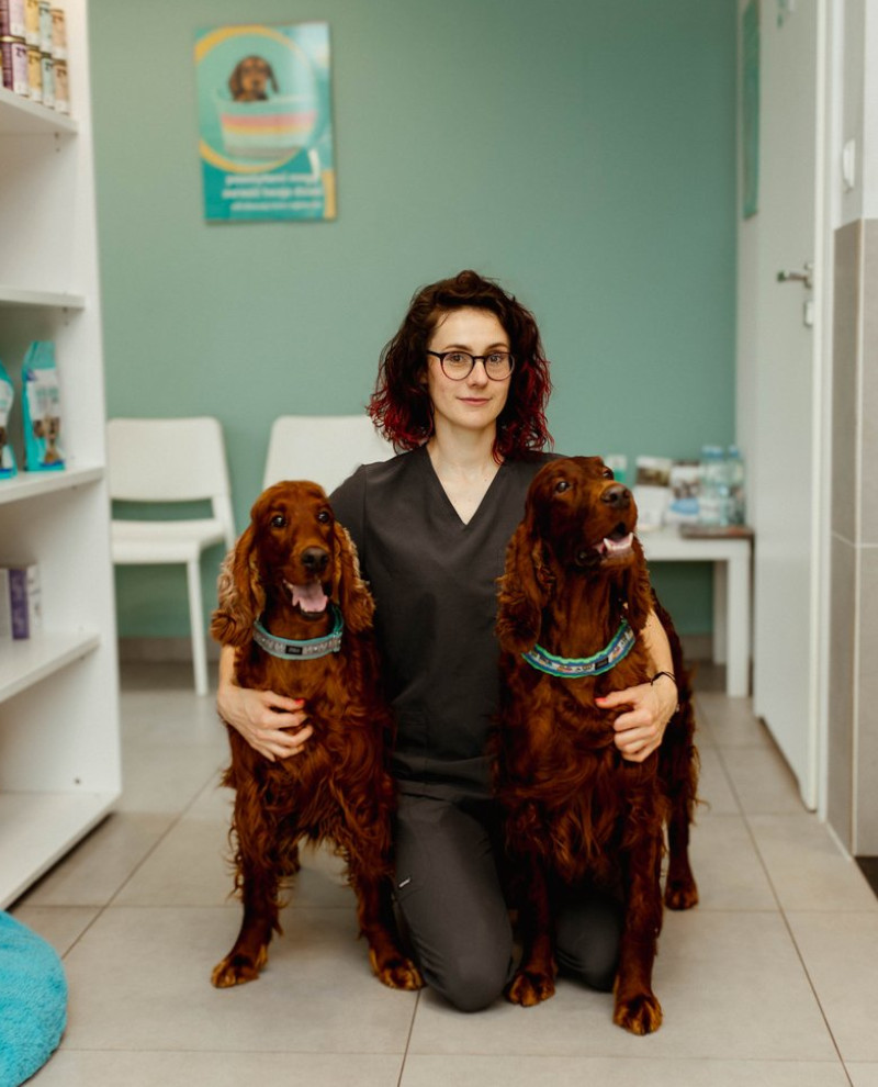 Współzałożycielka przychodni, absolwentka wydziału medycyny weterynaryjnej we Wrocławiu. Specjalista chorób wewnętrznych psów i kotów oraz członek polskiego stowarzyszenia lekarzy weterynarii małych zwierząt. Uczestniczka licznych szkoleń z tematyki chorób psów i kotów. Jej głównymi zainteresowaniami z zakresu medycyny weterynaryjnej są stomatologia, rozród i dermatologia. Prywatnie opiekunka trzech seterów irlandzkich i dwóch adoptowanych kotów: Isli, Skippera, Jolki, Summer i Mortiego.